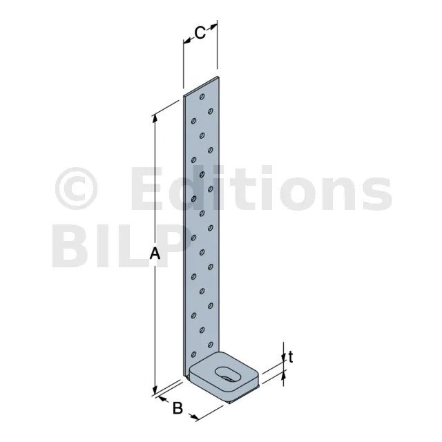 Ancrage pour montant d’ossature 40x394x54mm épaisseur 4mm - Réf. AH39050/4-FR