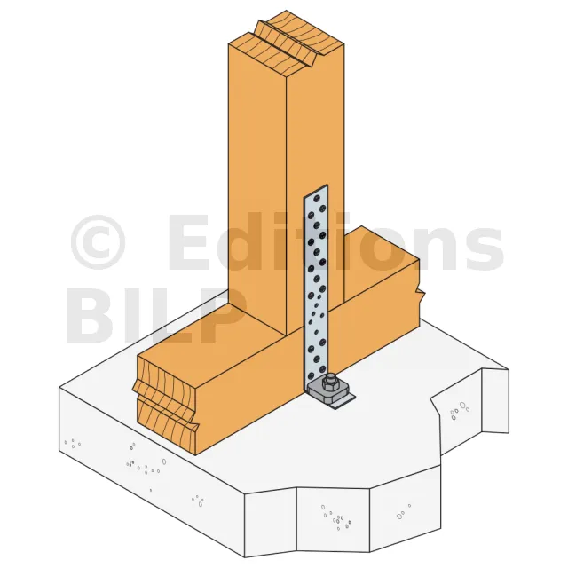 - Permet d‘ancrer solidement le mur ossature bois au sol (préconisé en zone sismique),