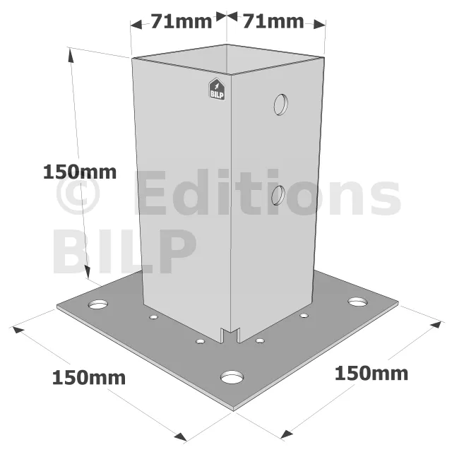 - 1 pied de poteau PPJBT70 ou PPJBT90 en acier galvanisé à chaud,