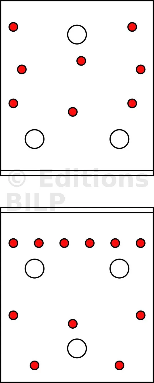 - Fixation BOIS/BOIS - clouage partielAile A : 4 et Aile B : 5 CNA Ø4.0x35 ou Ø4.0x50 mm