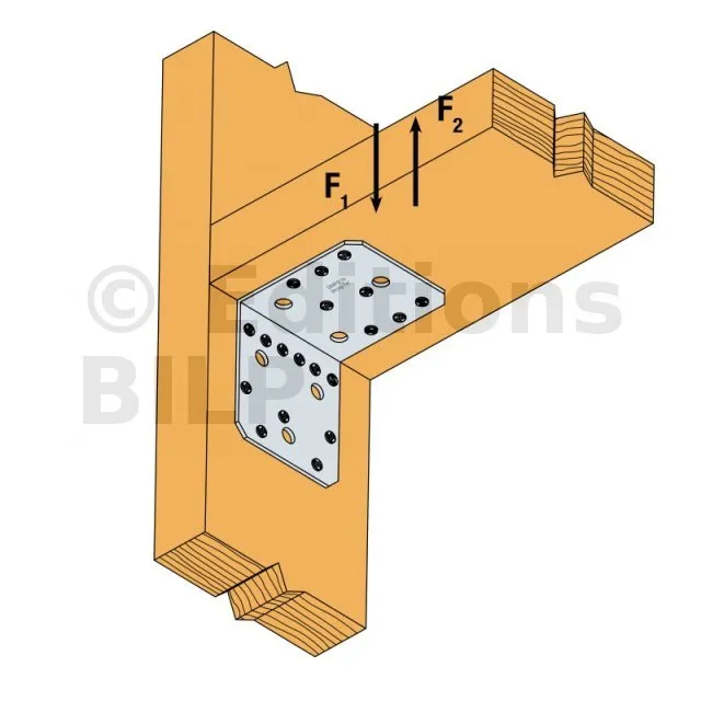 - Connexion bois sur support rigideAile A : 5 CNA Ø4.0x35 ou Ø4.0x50 mm et Aile B : 2 boulons ou tirefond Ø10