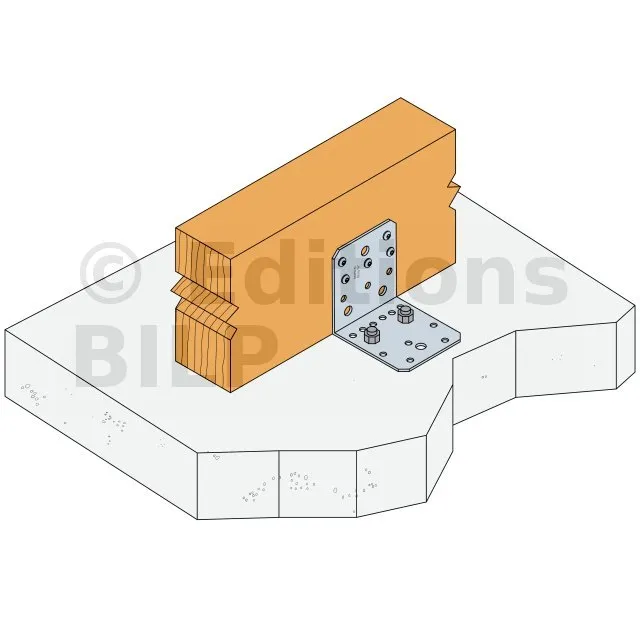 Référez-vous à la gamme d’ancrages Simpson Strong-Tie pour les ancrages adaptés. Les solutions standards sont à choisir en fonction du type de support (béton, maçonnerie, etc ...) de l’entraxe et des distances aux bords.