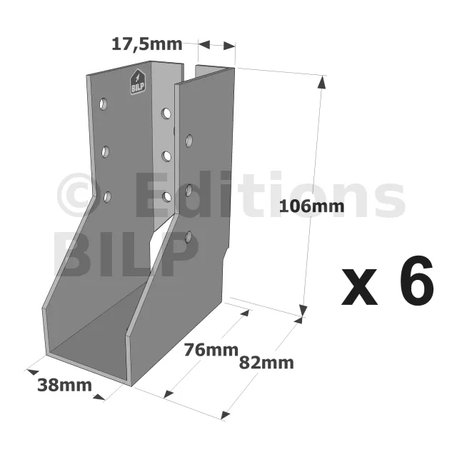 On admet une tolérance de 2 mm maximum entre l‘épaisseur du bois et la largeur du sabot. Exemple : un sabot plié à 76 mm peut porter une épaisseur de bois de 74 mm.