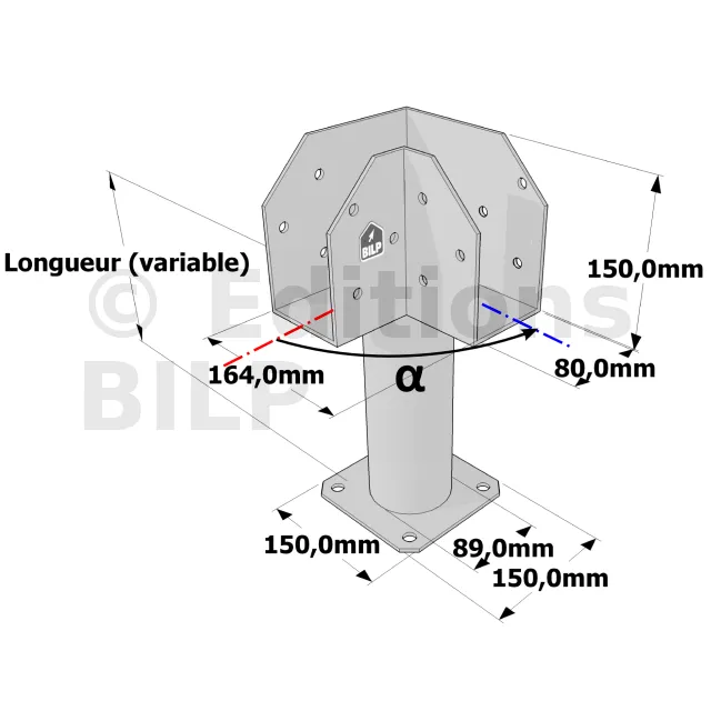 Poteau structurel OSP - D89mm - Platine haute en L 80x164x150mm - Embase 150x150mm
