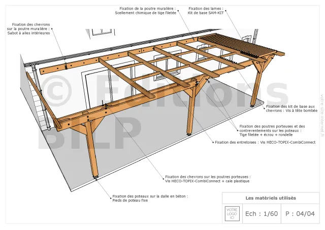 - Le calcul de la structure de votre pergola (dimensionnement des éléments en bois). Il s’agit de la prestation : la vérification des plans
