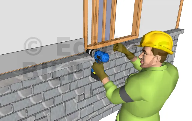 3. Si le support est en bois, l’équerre est aussi pointée ou vissée sur celui-ci.