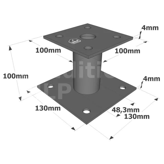 Le pied de poteau fixe finition noire PPA100PB est polyvalent et discret, il est couramment utilisé dans les applications structurelles.