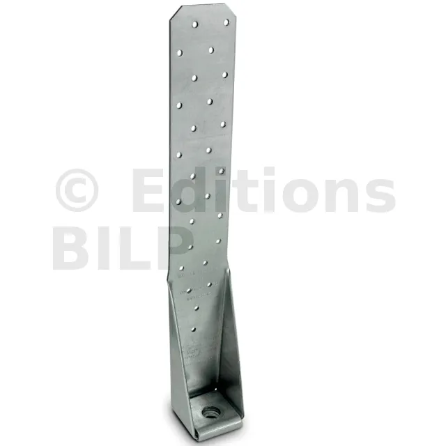 Cet ancrage reprend des efforts de traction dans différentes configurations. Les perçages de pointes permettent d‘adapter la fixation en fonction des configurations : utilisation en travaux neufs, réhabilitation pour le renforcement des structures existantes.