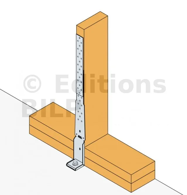 - Sa double configuration (pliable sur chantier) lui permet d‘ancrer solidement le mur ossature bois sur un acrotère ou sur la dalle béton (préconisé en zone sismique),