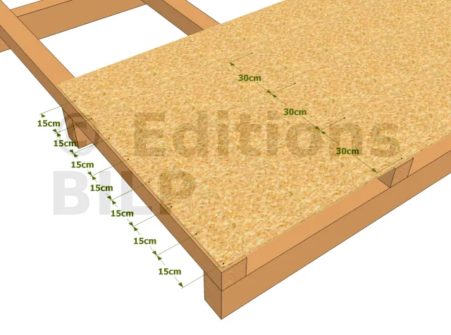 3. Positionner les TFPC pour que le bord soit aligné avec le bord du panneau d’ossature.