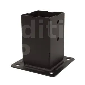 | Pied de poteau carré noir 70 × 70 – Réf. PPJBT70PB | Finition noire design, platine renforcée 2,5 mm, double anticorrosion, pose rapide sur béton ou bois. |