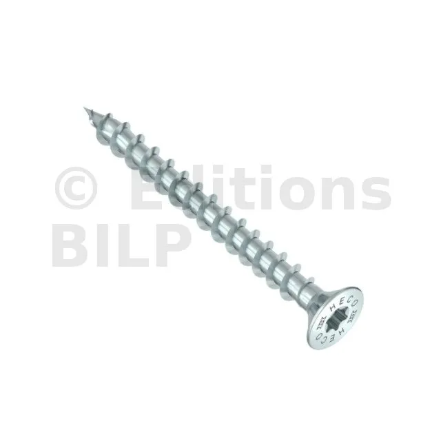 HECO-TOPIX-plus, vis de pose, tête fraisée à poches de fraisage, HECO-Drive, filet total variable, zingué blanc, A3K - Réf. 60769