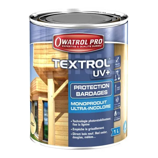 TEXTROL UV+ : Protection Bardage (Mélèze, douglas…) - barrière anti UV - Incolore - Phase aqueuse - Réf. 1100