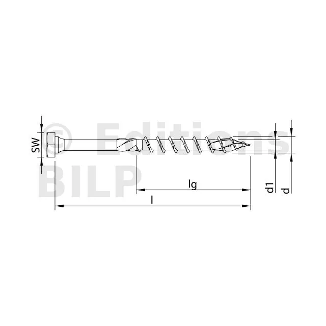 HECO-TOPIX-plus, tête hexagonale combinée, tête hexagonale + T-Drive, filet partiel, zingué blanc - Réf. 61273