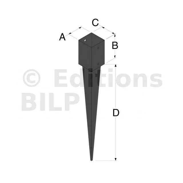 Pied de poteau carré à enfoncer - Finition NOIRE