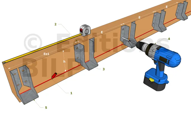 - 1. Tracer une ligne repère à une distance h (hauteur de la solive) du bord de la poutre.