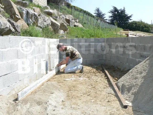 Pose des dalles béton