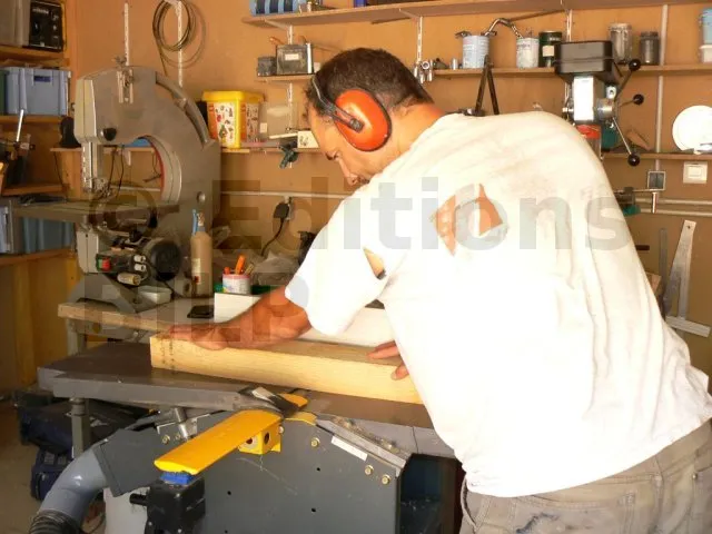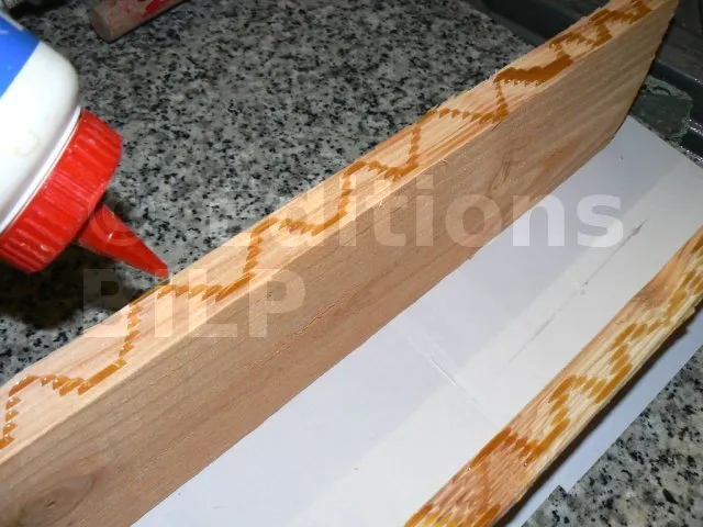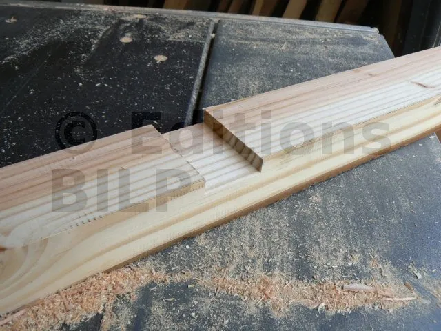 Pour cela, j’ai pris du Douglas mais comme je ne disposais pas d’une largeur et d’une épaisseur suffisantes, j’ai réalisé un assemblage lamellé-collé. Pour la colle, j’ai pris une polyuréthane liquide, idéale pour le collage bois en extérieur. Avant le collage, j’ai usiné les chants avec un profil en denture.