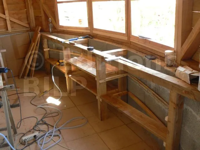 Un établi est indispensable pour tout jardinage un peu sérieux. Il sert à ranger les outils, les plots, les produits phytos, les graines, etc. et à travailler au sec avec un confort maximum.
