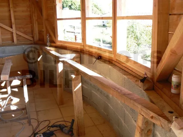 Pour construire les trois fenêtres, j’ai pris le même bois que l’ossature, c’est-à-dire du Douglas. Il me restait de nombreuses chutes de toutes manières.