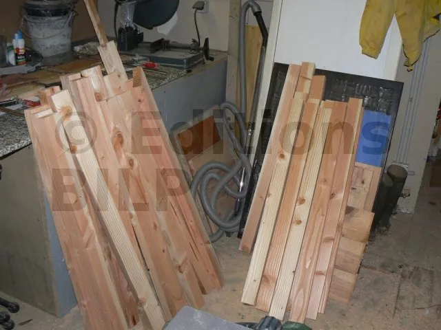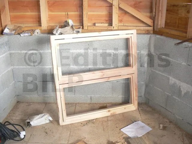 Pour chaque fenêtre, j’ai fait un dormant sous la forme d’un simple cadre avec des tasseaux. Un dormant recevra deux ouvrants.