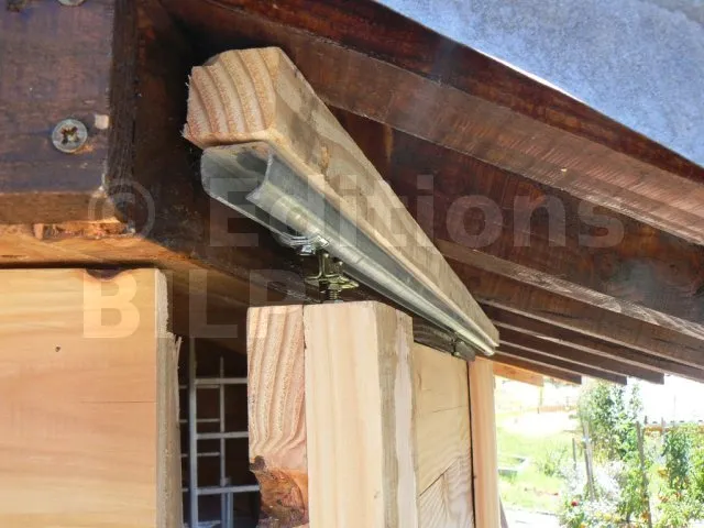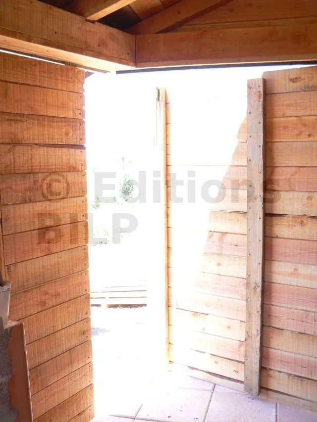 J’ai réalisé la porte avec des planches de bardage. Il s’agit en réalité de deux portes : une coulissante et une autre battante.