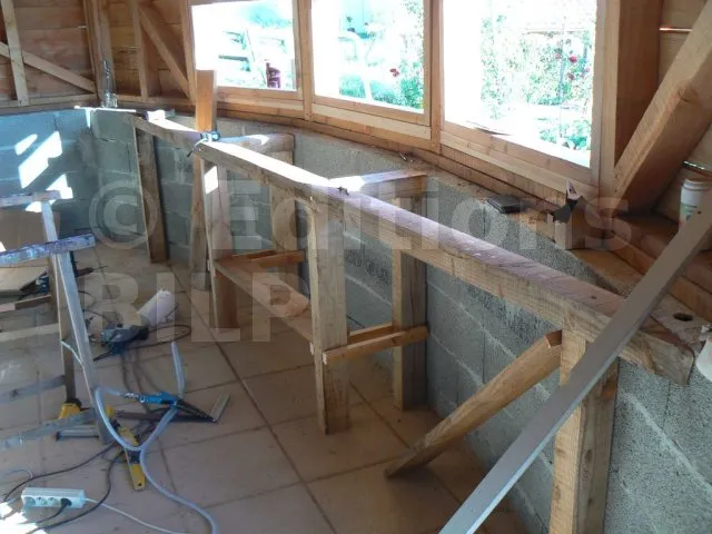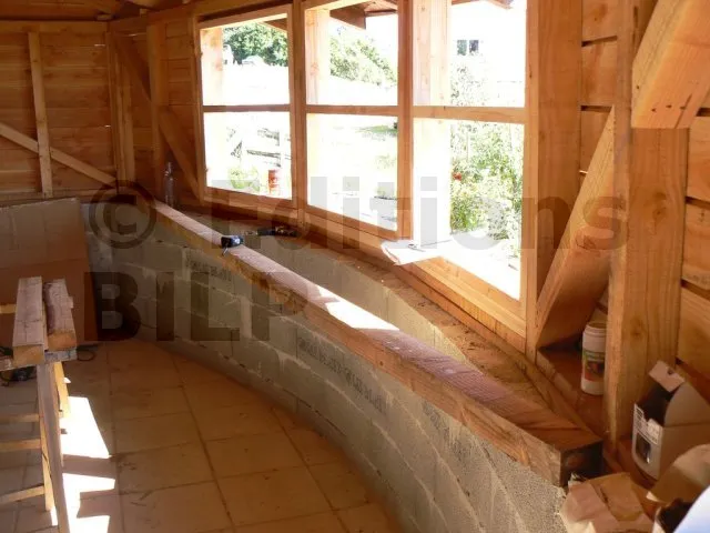 Quand j’ai réalisé les plans, je ne me suis pas embêté à essayer d’utiliser des dimensions standards pour les fenêtres. Je me retrouve donc avec une large ouverture segmentée en 3 parties. De toutes façons, je peux réaliser une grosse économie en réalisant les fenêtres moi-même. Et des fenêtres industrielles auraient altéré le charme de ma construction "faite maison".