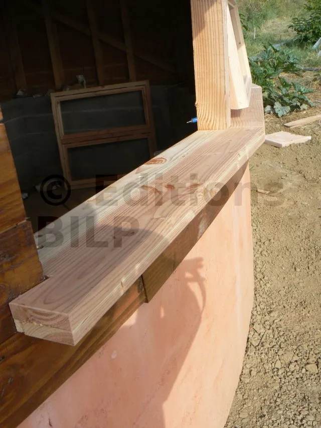 J’ai réalisé un large rebord de fenêtre car nous voulons pouvoir y déposer des objets. Quand on travaille dans un potager, il est toujours pratique de disposer d’une surface horizontale propre pour y déposer un sécateur, un sachet de graines, des pots, etc.