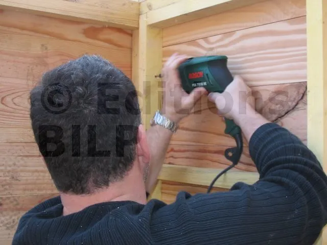 Maintenant, on fixe les lames sur l’ossature.