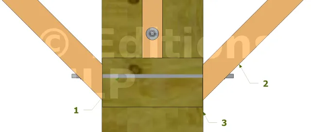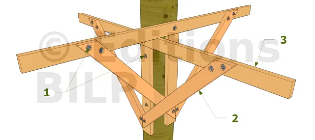 - par support métallique. On utilise dans ce cas des supports métalliques pour fixer les jambes de force sur le tronc. Malheureusement, il est généralement nécessaire de faire des commandes spéciales pour se procurer ces accessoires métalliques.