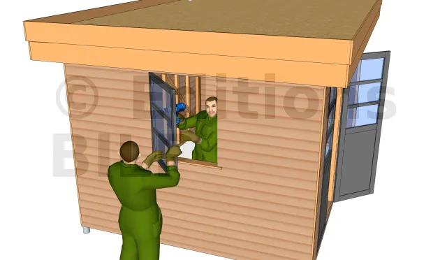 Pour la fenêtre cadre de devant, il est plus facile car il peut être fixée simplement par des vis D6 L80 à travers les montants ossatures de l’abri.