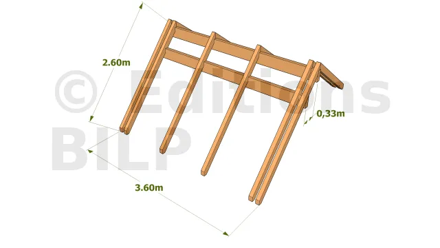 Nomenclature de la toiture: chevrons, panne, planche de rive, support des plaques en H et plaque en H