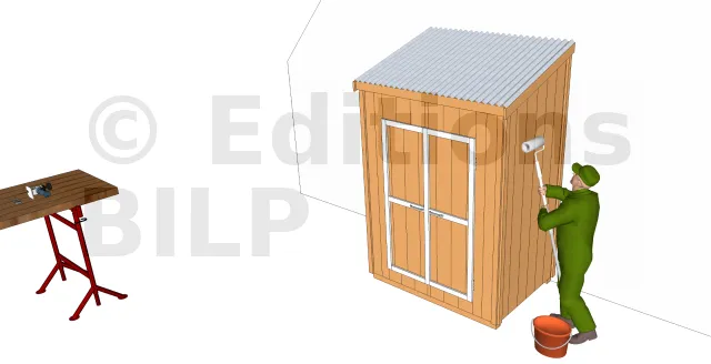 Enfin, pour la protection, peindre l’appentis avec une lasure de protection contre d’éventuelles attaques extérieures. Utiliser un pistolet à peinture, un rouleau, un pinceau.