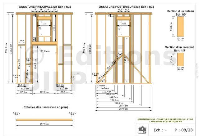 Guide de construction des cabanes et abris de jardin, incluant également le guide des ossatures-bois, le guide des plateformes bois, et le guide des charpentes, sur support PAPIER. | |||